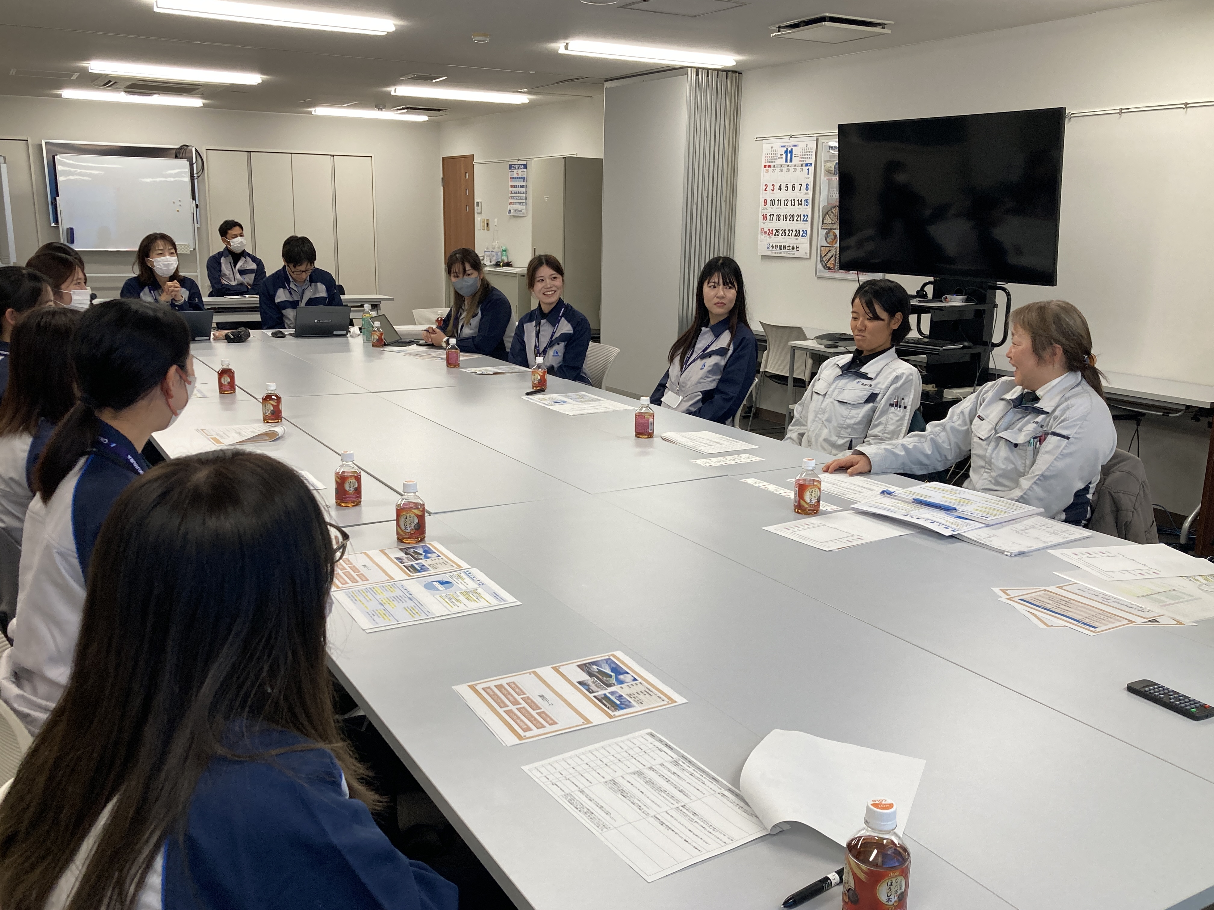 2025年11月27日、美樹工業株式会社の高田所長をお招きし、女性技術者の活躍をテーマとした意見交換会を開催しました。当社からは土木・建築部門に所属する9名の女性技術者が参加し、高田所長からは豊富な現場経験に基づく実践的なアドバイスや、“現場で力を発揮するために必要な考え方”について大変分かりやすくご講話いただきました。参加者からは多くの質問が寄せられ、キャリア形成や働き方など、多岐にわたるテーマで活発な交流が行われました。